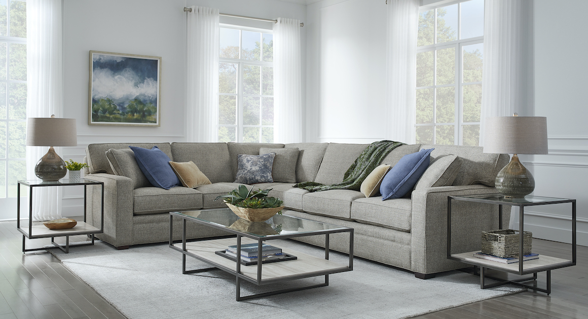 Unrivaled comfort meets superb style in the Atwood Collection. The sectional features feather down and fiber blend cushions and is stocked in a cool and neutral gray pewter fabric. Available in a variety of other fabrics and without feather blend cushions by special order.