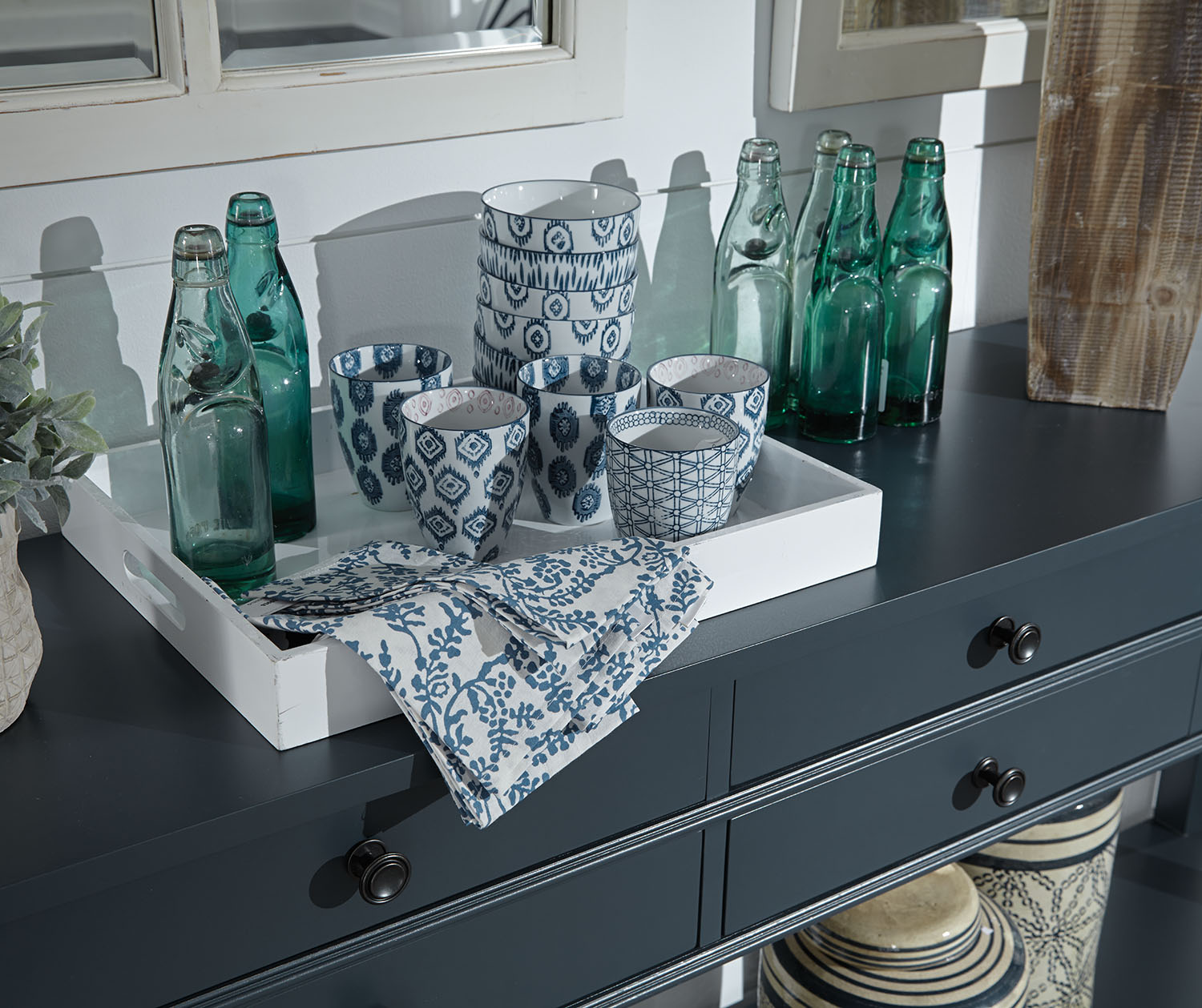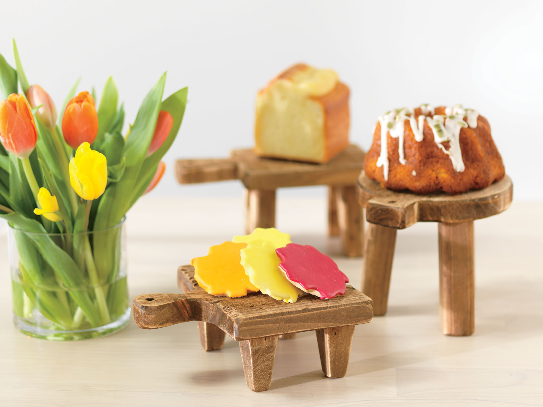 Tablescaping opportunities extend beyond dining tables—especially when hosting a large group who may spill into multiple rooms. You can decorate valuable surfaces, from bar carts to buffet tables, and make them just as gorgeous as your dining table. Just as you can vary the heights of objects on the dinner table, try displaying your hors d'oeuvres, like these cute cutting board risers, (now $79.96, on sale) atop your sideboard.
