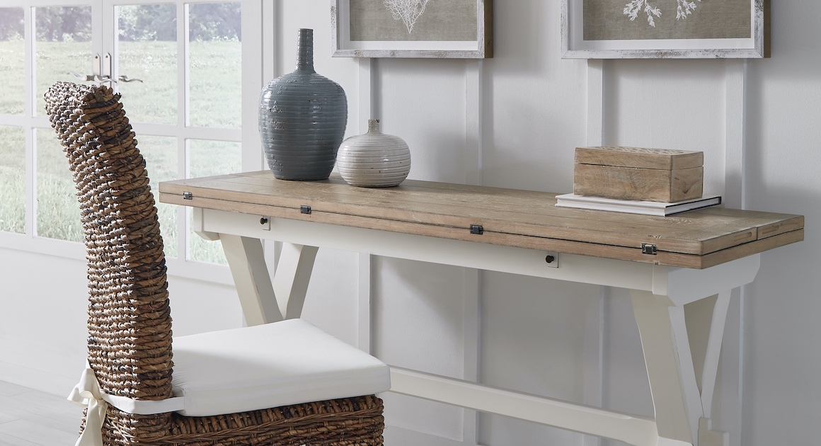 Turn any room into your home office with the versatile Hyannis flip top desk (which can double as a sofa table or small dining table) and stylish woven Catalina side chair.