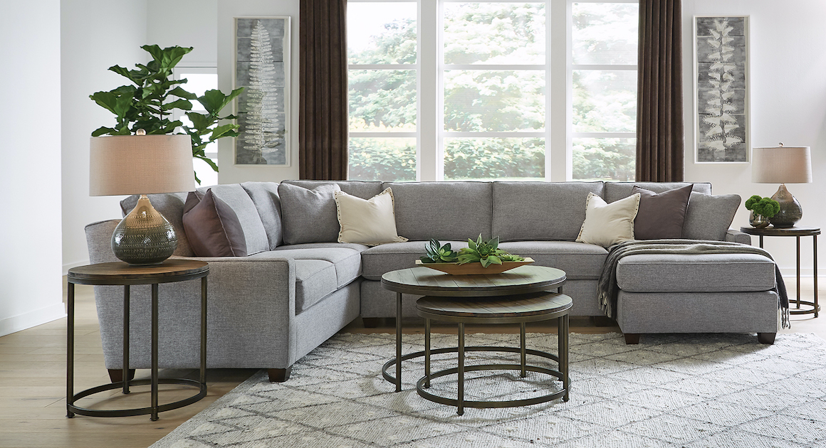 Sink into the comfort of the durable, comfortable, and stylish Twilight sectional. Shown here with the versatile Keaton nesting accent tables.